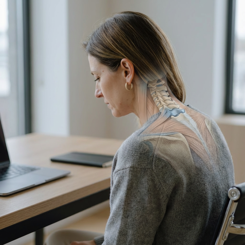 Prolonged sitting, stress, poor posture and mental overload can cause deep neck muscles to tighten — especially around the C7 and upper trapezius region.